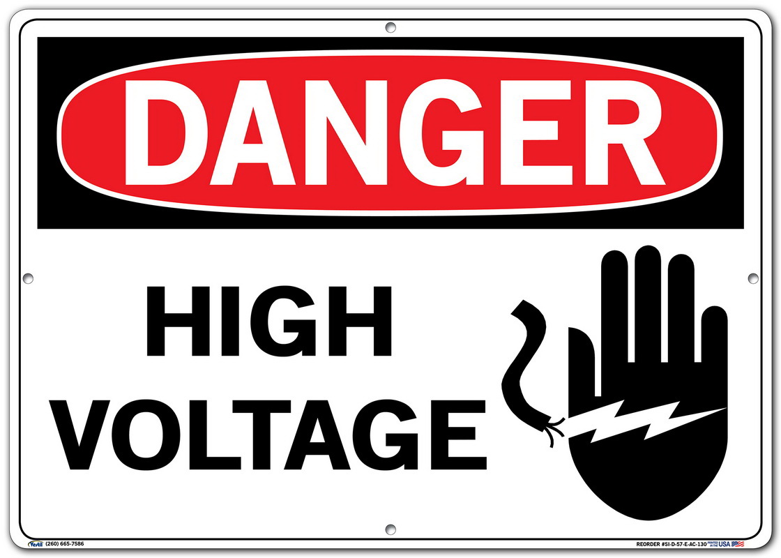 Vestil SI-D-57-E-AC-130 HIGH VOLTAGE Danger Sign, Aluminum Composite, 0.130" Overall Size, 20.5" W x 14.5" H