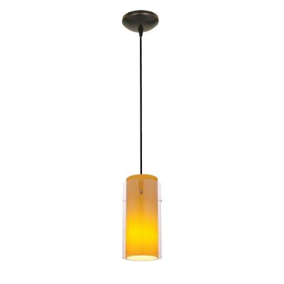 Glass`n Glass Cylinder - Integrated (SSL) LED Cord Pendant - Oil Rubbed Bronze Finish - Clear and Amber Glass Shade