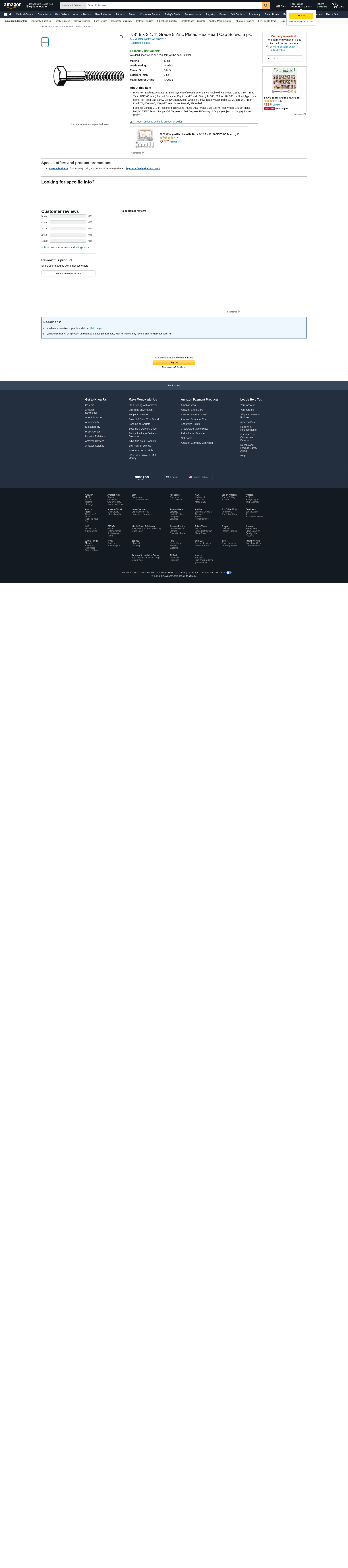 N01200.087.0325 | Hex Head Cap Screw 7/8-9X3-1/4 Steel Grade 5 Zinc Plated, 5PK | 38TN04 | Raptor Supplies Worldwide