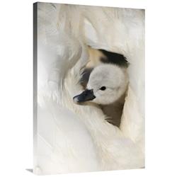 Global Gallery GCS-398175-2436-142 24 x 36 in. Mute Swan Cygnet, on Back of Adult Female, Abbotsbury, Dorset