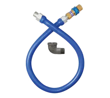 Dormont Blue Hose Moveable Gas Connector Hose Assembly, 1-1/4" inside dia., 60" long, covered with stainless steel braid, coated with blue PVC, 1 SnapFast QD, 1 elbow, 476,000 BTU/hr minimum flow capacity, limited lifetime warranty.