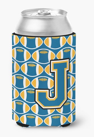 Carolines Treasures CJ1077-JCC Letter J Football Blue & Gold Can or Bottle Hugger, 0.25 x 4 x 5.5 in.