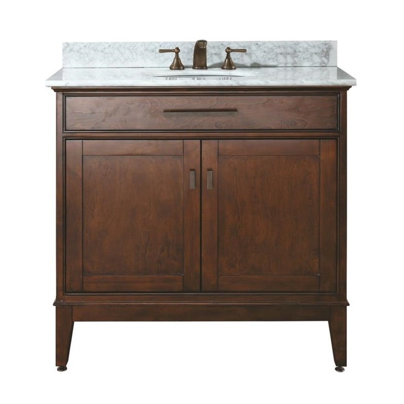 Avanity Madison 36 in. Vanity with Carrera White Marble Top and Sink in Tobacco finish