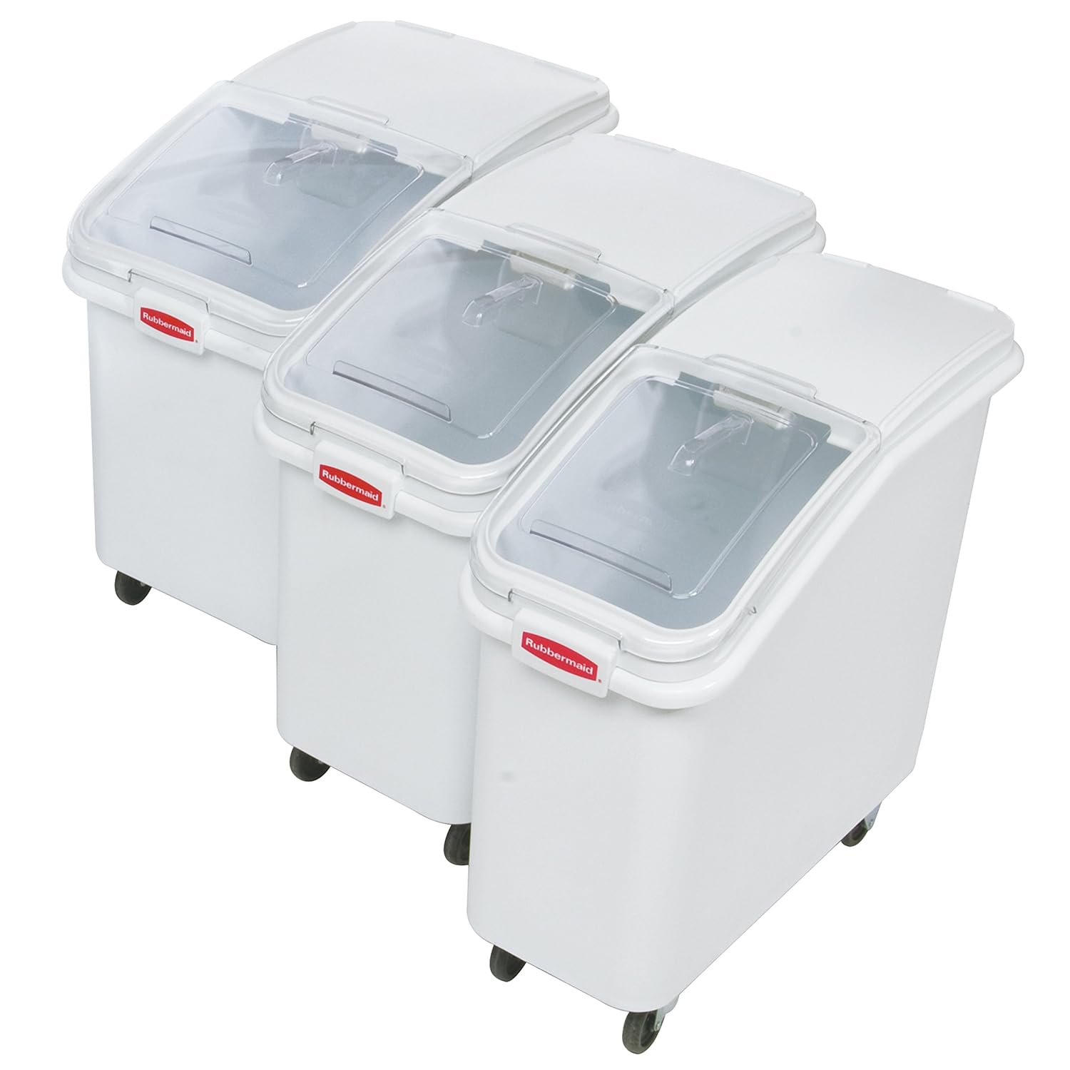 Rubbermaid Commercial Products ProSave Shelf-Storage Ingredient Bin With Scoop, 500-cup capacity, Plastic, White, Sliding Lid, Container with Wheels for Kitchen/Restaurant Food Organization