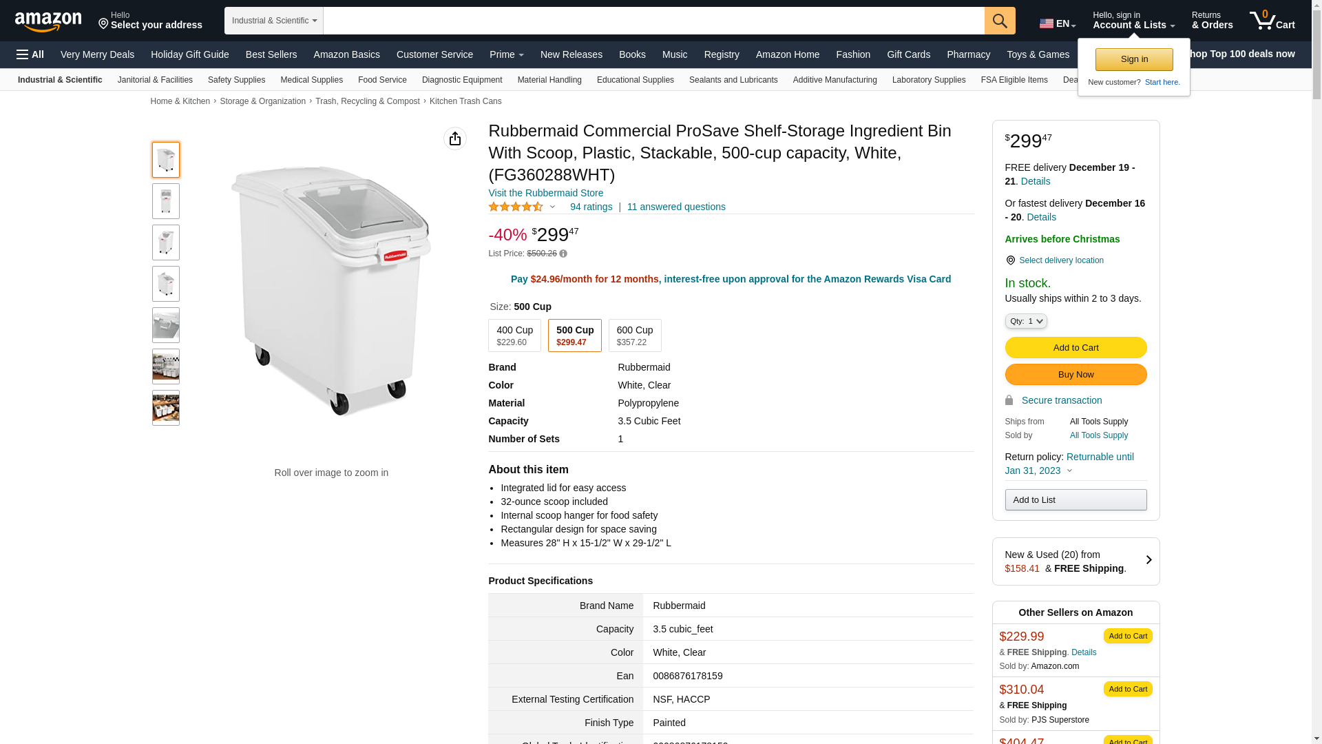 | ToolUp.com | RUBBERMAID FG360288WHT | 1 | False | 1 | 1 @ $337.69 |