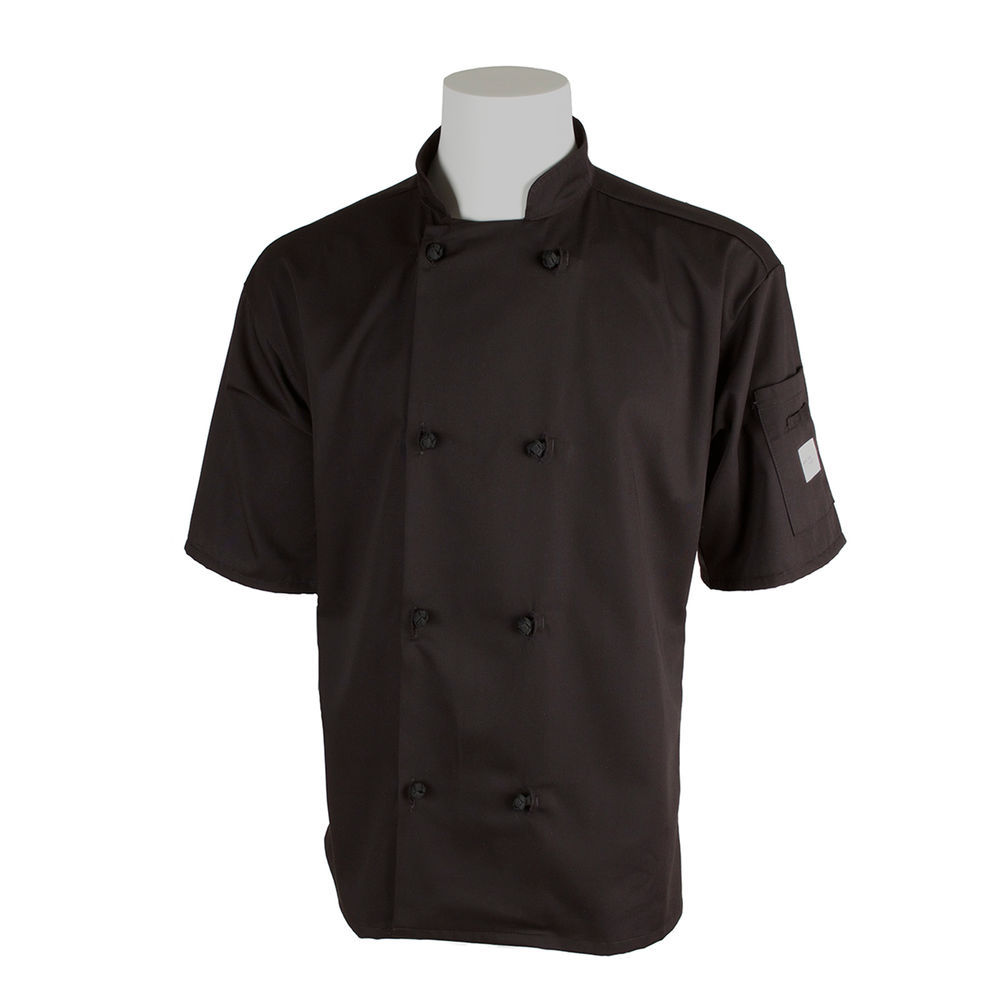 Mercer Culinary M60014BKM Millennia Men's Short Sleeve Cook Jacket with Cloth Knot Buttons, Medium, Black