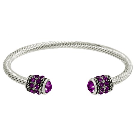 Falari Crystal Cable Wire Cuff Bracelet (Amethyst)