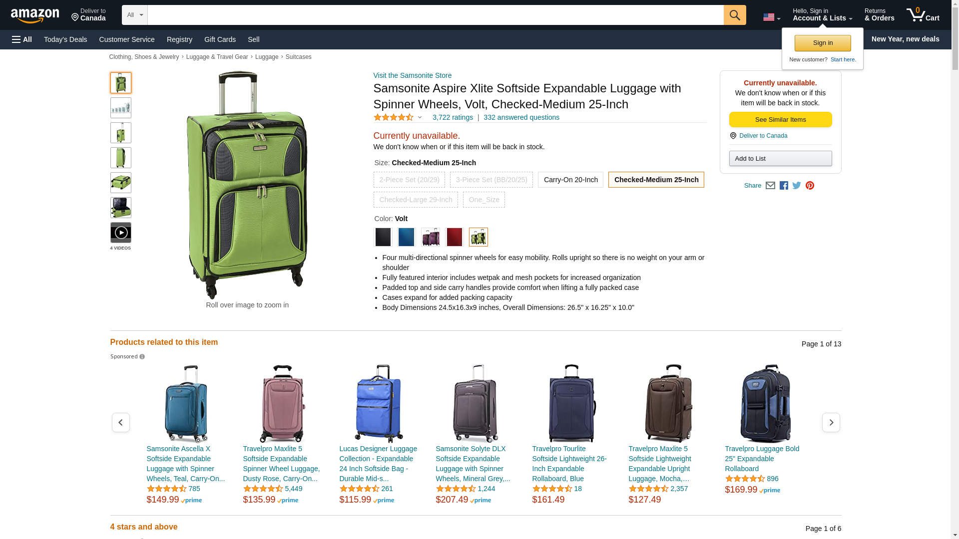 Samsonite Aspire Xlite Softside Expandable Luggage with Spinner Wheels, Volt, Checked-Medium 25-Inch