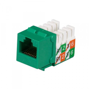 FMT924-R2 - Gigabase2 Cat5e Jack, Universal Wiring, Green Features: Work with our GigaBase CAT5e Cables. High-density, compact design makes these jacks ideal for multimedia applications. Meet TIA/EIA-568-B.2 CAT5e standards. Data transmission rates up to 100 MHz. Completely backward compatible with CAT5 and CAT3 components. DETAILS Universal wiring. IDC contacts are phosphor bronze with tin plating. Labeled with both T568A and T568B wiring schemes. Nose contacts feature 50-micron gold plating over 100-micron nickel underplating. Make easy terminations using a 110 tool. The termination retention stuffer cap provides strain relief while enabling you to easily check terminations. Feature a keystone style for snap-in installation.