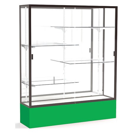 Waddell Spirit Mirror Back Display Case, 60W by 72H by 16" D, Dark Bronze Finish with Kelly Green Base