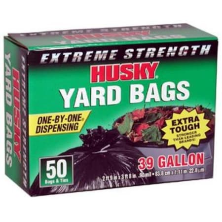 Husky HK39WC050B 39-Gallon Twist Tie Yard Bags, 50 Count