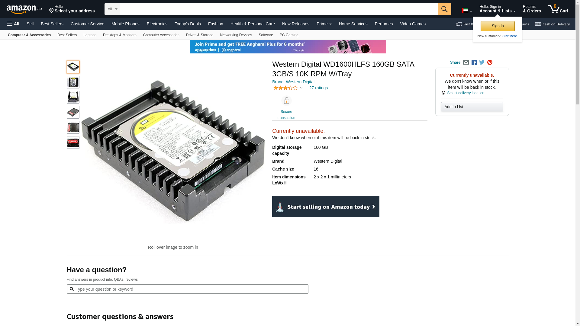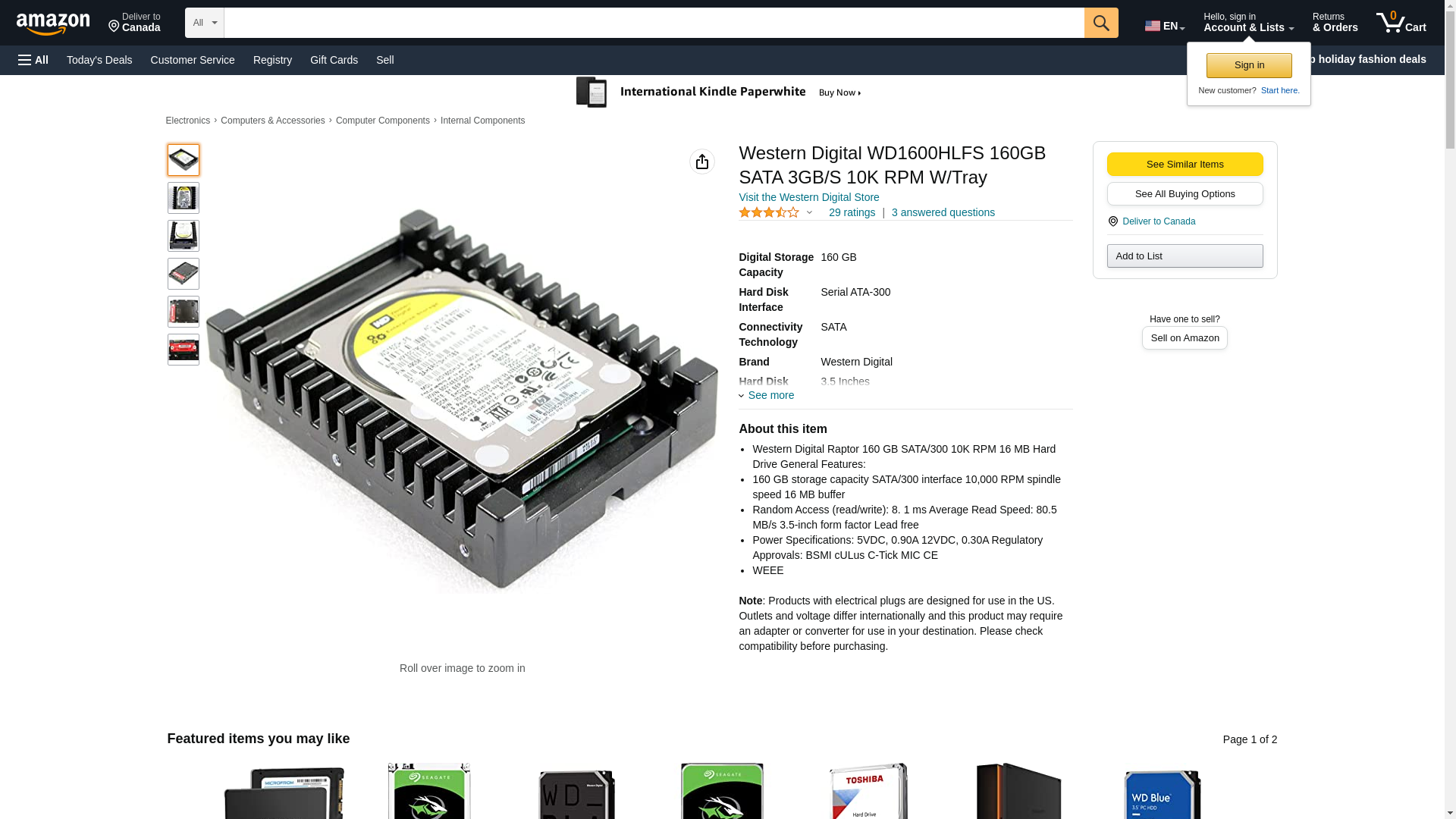 | Feature | WESTERN DIGITAL - IMSOURCING WD1600HLFS 160GB SATA 3GB/S 10K RPM W/TRAY |