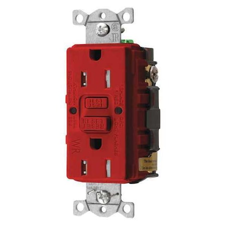 This Self-Testing GFCI receptacle is designed to protect personnel from shock hazards that can occur in electrical appliances and tools, especially in wet and damp locations. It meets UL requirements by automatically monitoring ground fault circuit interrupting functionality every 3 hours or less. Tamper-resistant with LED indicator.<br /><br /> Item: GFCI Receptacle<br /> Type - Plugs and Receptacles: GFCI<br /> Application Environment: Commercial Environments<br /> Self-Testing: Yes<br /> NEMA Receptacle Configuration - Plugs and Receptacles: 5-15R<br /> Number of Poles: 2<br /> Number of Wires: 3<br /> Tamper Resistant: Yes<br /> Weather Resistant - Plugs and Receptacles: Yes<br /> Amps - Plugs and Receptacles: 15<br /> Voltage - Plugs and Receptacles: 125VAC<br /> Color - Plugs and Receptacles: Red<br /> Outlet Type - Plugs and Receptacles: Decorator Duplex<br /> Mounting Type - Plugs and Receptacles: Flush<br /> Wiring Method - Plugs and Receptacles: Back and Side<br /> Item - Plugs and Receptacles: Receptacle<br /> Power Indicator: No<br /> HP: 0.5<br /> Reset Type: Automatic<br /> Surge Suppression: No<br /> Standards: UL Listed, CSA Certified<br />