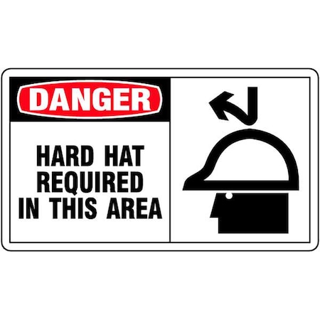 Accuform MPPE073VP Sign, Danger Hard HAT Required in This Area", 7" Length x 10" Width x 0.055" Thickness, Plastic, 7" x 10", Red/Black on White