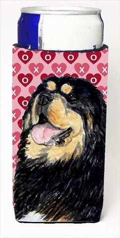 Caroline's Treasures SS4512MUK Tibetan Mastiff Hearts Love Valentine's Day Ultra Hugger for slim cans Can Cooler Sleeve Hugger Machine Washable Drink Sleeve Hugger Collapsible Insulator Beverage Insul