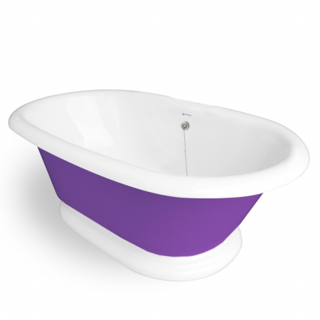 Soak in the ultimate tub of luxury with biggest AcraStone Pedestal Bathtub, the 72" Heritage bathtub. This is a 72"x42"x26.5" tub, holding 72 gallons of water. AcraStone material is extremely durable and backed by a limited lifetime warranty. This pedestal Heritage Tub comes with no faucet, pedestal base, and Satin Nickel waste and overflow. The Satin Nickel metal finish complements the Splash of Color exterior to create a center piece for any bathroom.