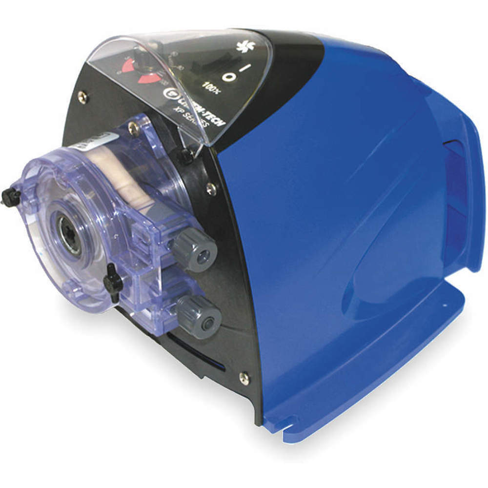- <b>Price For:</b> Each <b>cc/Min.</b>: 23.656 <b>Max. Flow (gpd) - Pumps</b>: 9.00 gpd <b>Max. Pressure - Pumps</b>: 110 psi <b>HP - Pumps</b>: 1/6 <b>Self-Priming</b>: Yes <b>Voltage - Pumps</b>: 115VAC <b>Motor RPM</b>: 30 <b>Number of Feeds</b>: 1 <b>Hz</b>: 60 <b>Pump Type</b>: Peristaltic <b>Height</b>: 8-1/4" <b>Includes</b>: Strainer, Injection Assembly, Spare Tube Assembly and 15 ft. of Suction/Discharge Tubing, Rain Hood
