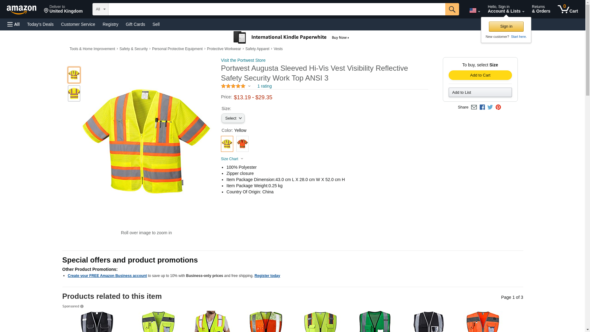 Order US383YERXL by Portwest Vest-Port Augusta Sleeved Hi-Vis Vest, Yellow - US Mega Store