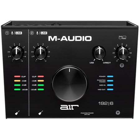 <b>Sets the new standard with professional studio-quality and features!</b><br />With the M-Audio <b>AIR 192/6</b>, you can create 24-bit/192kHz studio-quality recordings with an intuitive and easy-to-use audio interface. The AIR 192/6 enables you to record up to 2 channels at once with its 2 dedicated XLR+1/4" balanced combo inputs, and 2 all-new 1/4" instrument inputs that have a specially designed gain and impedance stage to provide the most accurate representation of a guitar or bass plugged directly into the interface. 5-pin MIDI In and Out connections are included for connecting synths, sequencers and other external MIDI gear.</p><p><b>They've included software to match your style!</b><br />The AIR 192/6 comes complete with a software package that has everything to get you started. With 2 powerful DAWs to suit your production needs, AIR 192/6 includes Pro Tools / First M-Audio Edition, and Ableton Live Lite.</p><p>They've also added an entire Effects Plugin, Virtual Instruments and Loop package to cater to all your production needs. Whether you need a guitar tone, reverb, or delay they've got your effects needs covered with Eleven Lite, 20 effect plugins and AIR's Creative FX Collection. With the included AIR Virtual Instrument plugins, you'll have a virtual drum machine, synth, strings, percussion, organ and piano plugins to add world-class-sounding instruments to your songs with ease.</p><p><b>Crystal™ Preamps, Pristine A/D Converters and Premium Components</b><br />M-Audio's engineers designed the Crystal™ Preamps to provide you with a transparent, low-noise preamp that guarantees the best sound from your microphones and captures your performance exactly the way you intended. The AIR 192/6 incorporates pristine A/D converters to provide 24-bit resolution digital audio for explosive dynamic range that captures every nuance and subtlety of your performance.</p><p><b>Hear the performance now-not a second later</b><br />When recording, you want to focus on capturing that perfect moment, and getting the best performance out of your artist and talent. You don't want to be bogged down by "clicks," "pops" or latency. The AIR 192/6 not only features a high-speed USB connection for providing the lowest round trip latency (2.59ms*) between your machine and your hardware, but it also features monitor mix control for listening directly to the source inputs, providing you with zero-latency technology.</p>