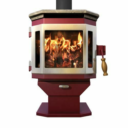 MF Fire MF-001-BP08-DP00-SP01-FM01 Catalyst Wood Stove - Mojave Red & Stainless Steel Door with Soapstone Top & Room Blo