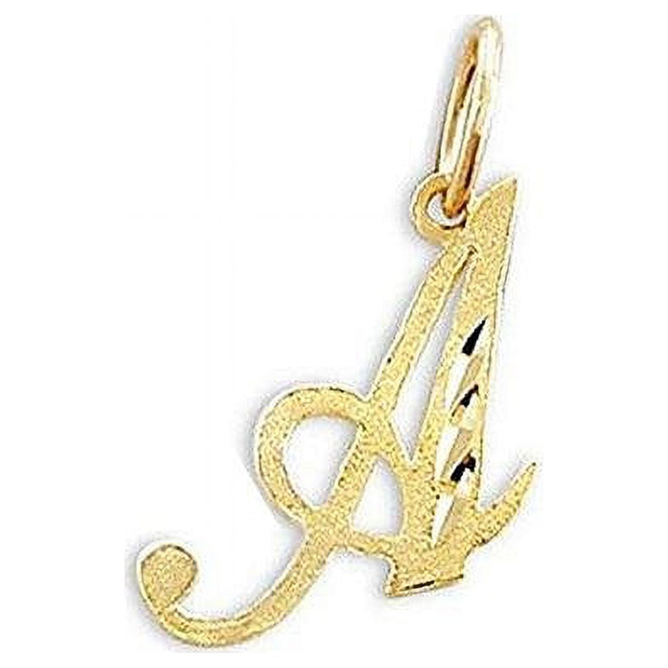 Precious Stars PT-2055-A 14K Yellow Gold Diamond-Cut Cursive Letter Initial A Pendant