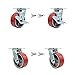 Polyurethane on Cast Iron Swivel Top Plate Caster Set 4 w/5" x 2" Red Wheels-Includes 2 Swvl with Brakes and Bolt on Swvl Lcks&2 Swvl with Bolt on Swvl Lcks-4000 lbs Total Cpty-Service Caster Brand