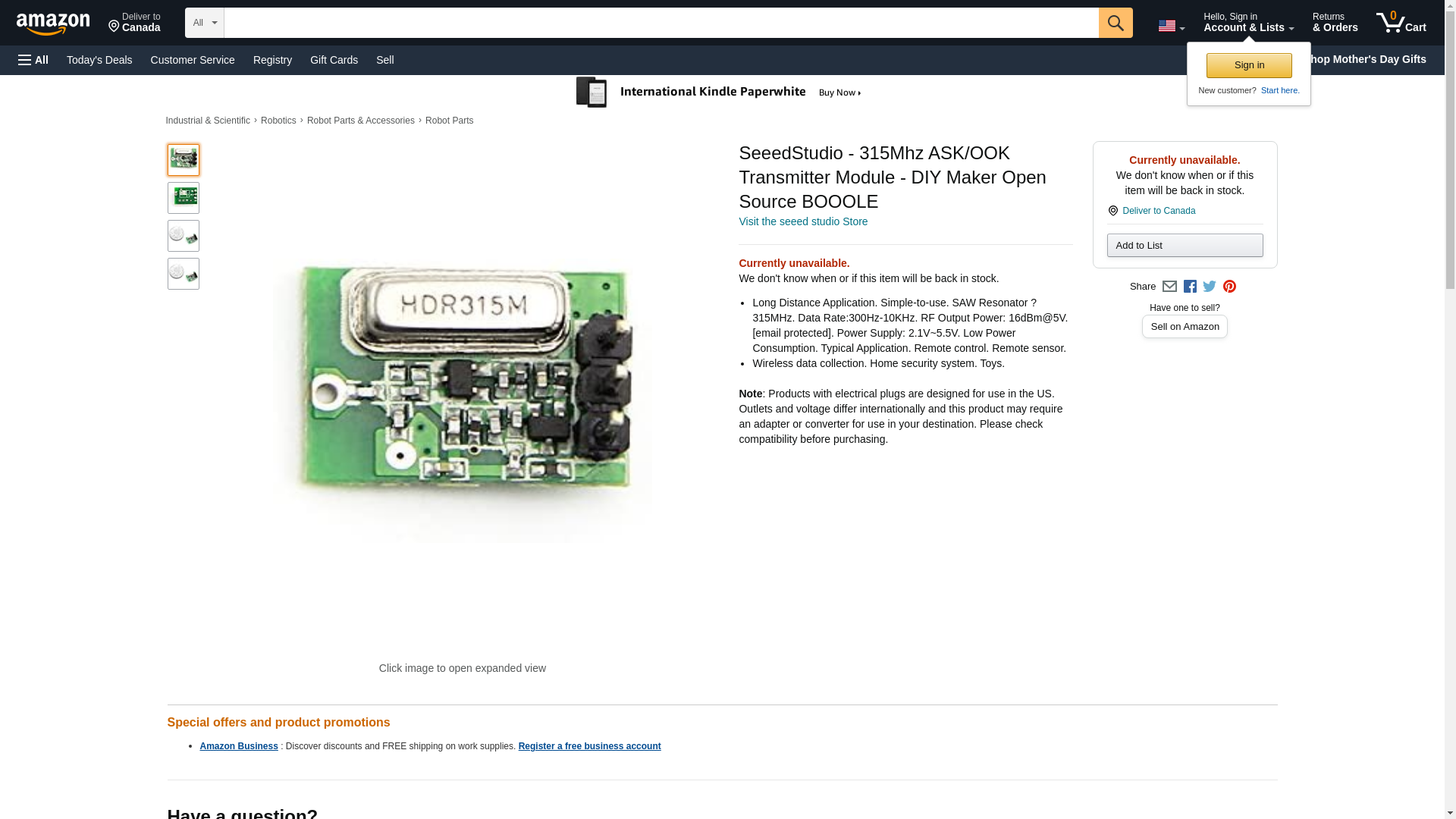 SeeedStudio - 315Mhz ASK/OOK Transmitter Module - DIY Maker Open Source BOOOLE