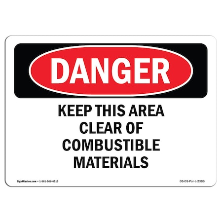 OSHA Danger Sign - Keep This Area Clear of Combustible Materials | Decal | Protect Your Business, Construction Site, Shop Area | Made in The USA