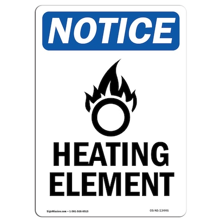 OSHA Notice Sign, Heating Element With Symbol, 24in X 18in Rigid Plastic