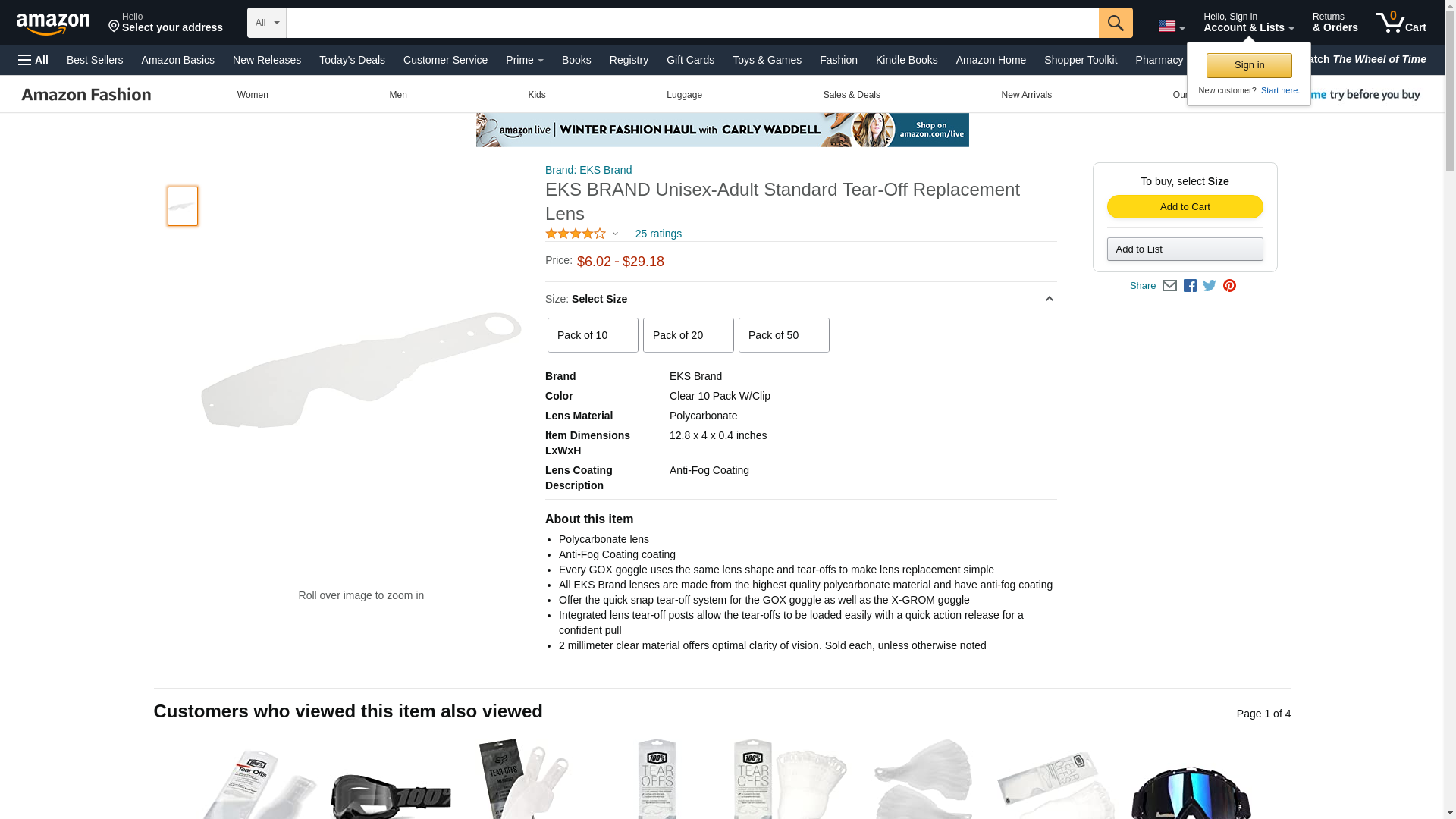 - Product Specifications: EKS pack of 20 tear-offs for motocross goggle measures 13 x 5 x 1 inch in size.