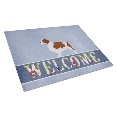 Caroline's Treasures BB5504LCB Welsh Springer Spaniel Welcome Glass Cutting Board Large Decorative Tempered Glass Kitchen Cutting and Serving Board Large Size Chopping Board