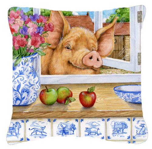 Carolines Treasures CDCO0352PW1818 Pig Trying to Reach the Apple in the Window Canvas Decorative Pillow