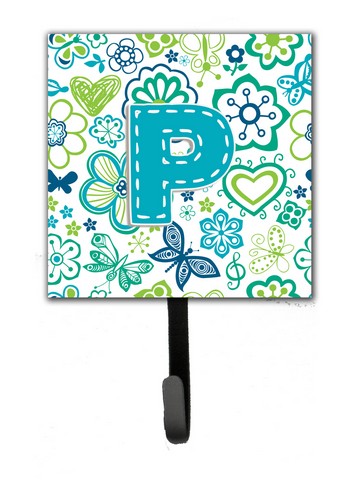 Caroline's Treasures CJ2006-PSH4 Letter P Flowers and Butterflies Teal Blue Leash or Key Holder, Small, Multicolor