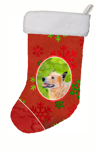 Caroline's Treasures LH9317-CS Australian Cattle Dog Red Green Snowflakes Christmas Christmas Stocking, Large, Multicolor