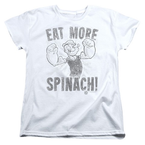 Trevco Popeye-Eat More Spinach Short Sleeve Womens Tee, White - Medium