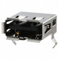 | Feature | <b>Minimum Quantity:</b> 1 <b>Packaging:</b> Tray <b>Connector Type:</b> USB - A <b>Number of Contacts:</b> 4 <b>Gender:</b> Receptacle <b>Specifications:</b> USB 1.1 <b>Mounting Type:</b> Surface Mount, Right Angle, Horizontal <b>Features:</b> Board Lock |