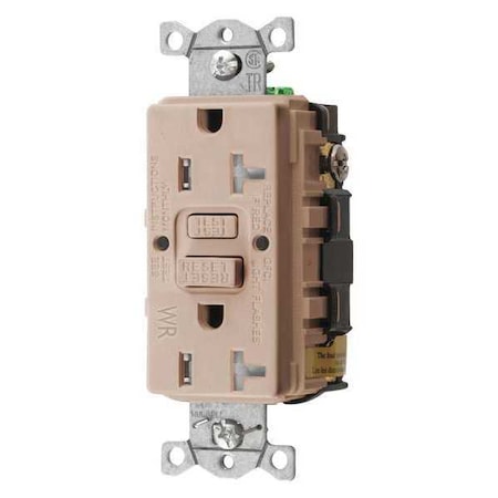 This Self-Testing GFCI receptacle is designed to protect personnel from shock hazards that can occur in electrical appliances and tools, especially in wet and damp locations. It meets UL requirements by automatically monitoring ground fault circuit interrupting functionality every 3 hours or less. Tamper-resistant with LED indicator.<br /><br /> Item: GFCI Receptacle<br /> Type - Plugs and Receptacles: GFCI<br /> Application Environment: Commercial Environments<br /> Self-Testing: Yes<br /> NEMA Receptacle Configuration - Plugs and Receptacles: 5-20R<br /> Number of Poles: 2<br /> Number of Wires: 3<br /> Tamper Resistant: Yes<br /> Weather Resistant - Plugs and Receptacles: Yes<br /> Amps - Plugs and Receptacles: 20<br /> Voltage - Plugs and Receptacles: 125VAC<br /> Color - Plugs and Receptacles: Almond<br /> Outlet Type - Plugs and Receptacles: Decorator Duplex<br /> Mounting Type - Plugs and Receptacles: Flush<br /> Wiring Method - Plugs and Receptacles: Back and Side<br /> Item - Plugs and Receptacles: Receptacle<br /> Power Indicator: No<br /> HP: 1.0<br /> Reset Type: Automatic<br /> Surge Suppression: No<br /> Standards: UL Listed, CSA Certified<br />
