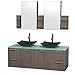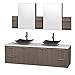 Wyndham Collection Amare 72 inch Double Bathroom Vanity in Grey Oak, White Man-Made Stone Countertop, Arista Black Granite Sinks, and Medicine Cabinets