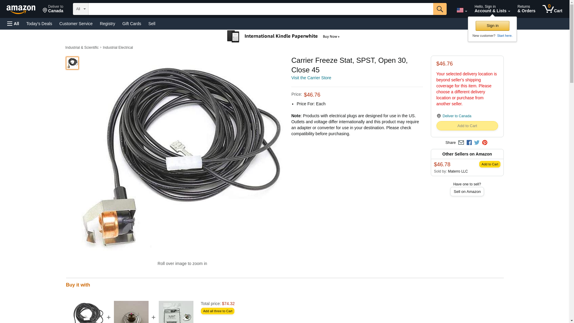 Carrier Freeze Stat, SPST, Open 30, Close 45