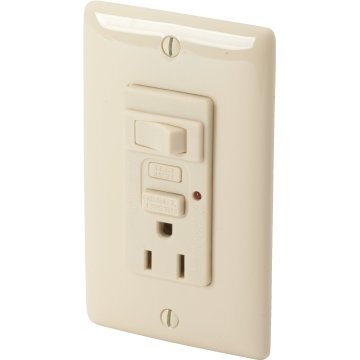 Power Protection Products, Receptacle, Self Test, GFCI and Single Pole Switch, Commercial Grade, 15A 125V, 2- Pole 3-Wire Grounding, 5-15R, Ivory