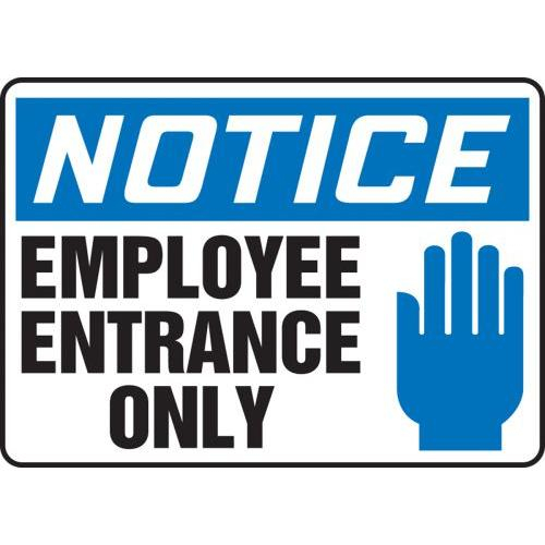 NOTICE Employee Entrance Only (w/Graphic) 10" x 14" Plastic Sign