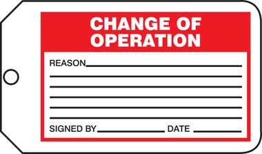 Order MMT334CTP by Accuform Safety Tag "Change Of Operation" PF-Cardstock - US Mega Store