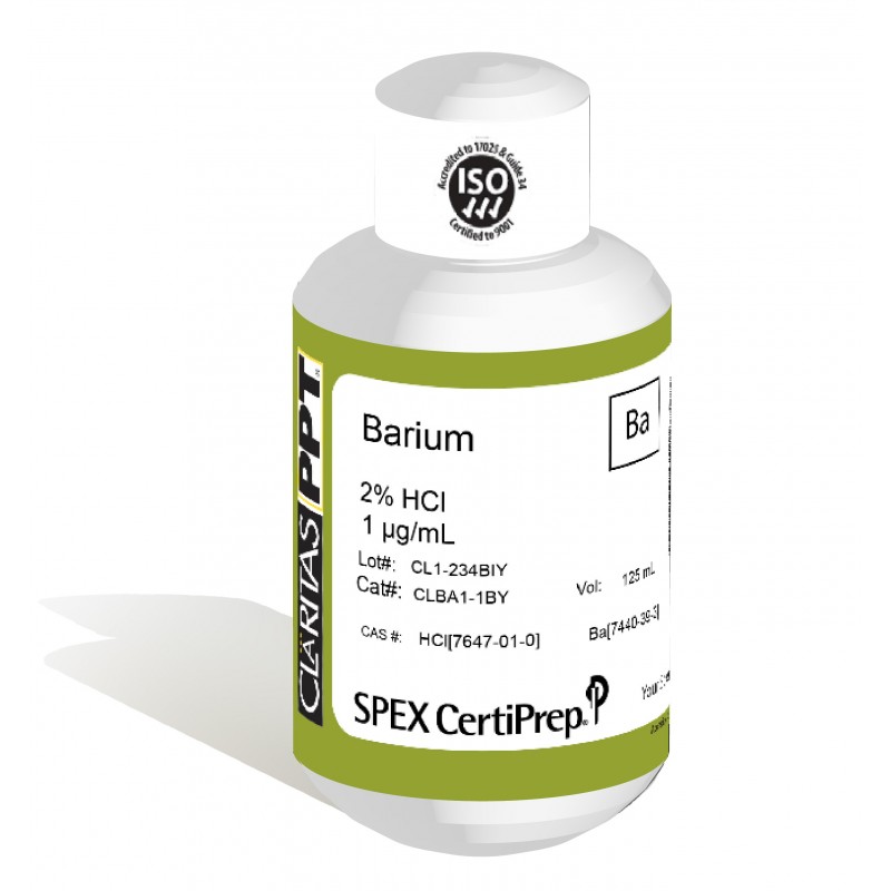 SPEX CertiPrep CLBA1-1BY ICP/MS Barium Standard, 1 UG/mL, 2% HCl Matrix, 125 mL