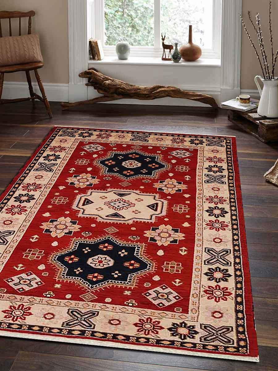 212 Main USAF0104K2609A11 Hand Knotted Afghan Wool & Silk 6 x 9 ft. Kazak Area Rug, Red & Cream