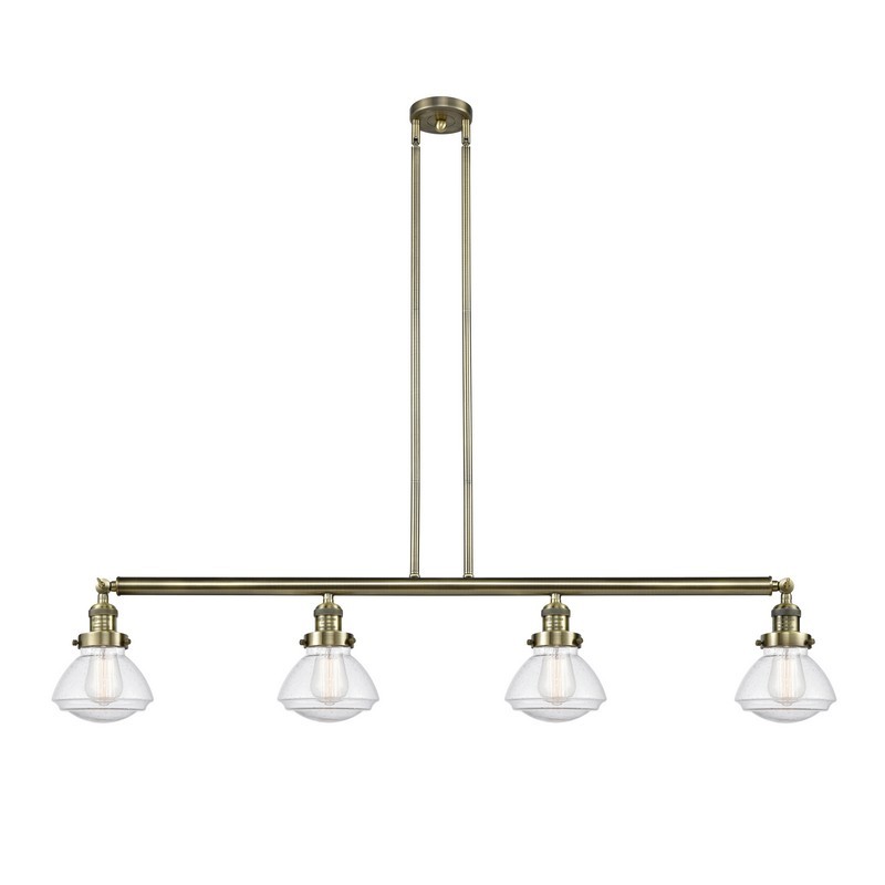 INNOVATIONS LIGHTING 214-AB-G324-LED FRANKLIN RESTORATION OLEAN 4 LIGHT 51 3/8 INCH SEEDY GLASS ISLAND LIGHT, ANTIQUE...