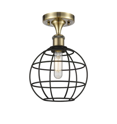 INNOVATIONS 516-1C-AB-CE-8-BK Lake Placid 1 8 inch Semi-Flush Mount Antique Brass. Style: Industrial, Farmhouse, Restoration-Vintage. Collection Name: Ballston. Metal Finish(Body): Antique Brass. Metal Finish(Shade): Matte Black. Material: Steel, Cast Brass. Dimension(in): 12(H) x 8(W) x 8(Dia). Bulb: (1)6W LED(Included). Voltage: 120. Dimmable: Yes. Color Temperature (Kelvin): 2700. Color Rendering Index (CRI): 90. Lumens: 750. Life Expectancy (Hours): 15000. Shade Shape: Globe/Orb. Glass or Metal Shade Color: Matte Black. Shade Material: Metal. Metal Shade Description: Matte Black Lake Placid. Shade Dimension(in): 8(W) x 7.25(H). California Proposition 65 Warning Required: Yes. UL/ETL Certification Type: Damp Location.