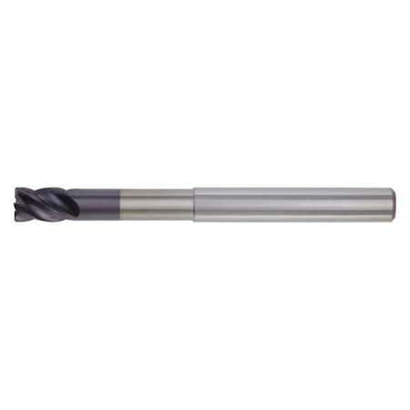 'Corner Radius End Mill, Grade TIALN-LT, List Number 4VN5, End Mill Style Corner Radius, End Mill Material Carbide, Dimension Type Decimal Inch, Milling Diameter 1/4 In., Corner Radius 0.030 In., Single End, Number of Flutes 4, Length of Cut 3/8 In., Center End Mill Cutting Type, Overall Length 4 In., Finish TiAlN, Straight Shank Type, Shank Dia. 1/4 In., Cutting Direction Right Hand, Helix Angle 38 Degrees , Neck Length 7/8 In., End Mill Application Roughing/Finishing'
