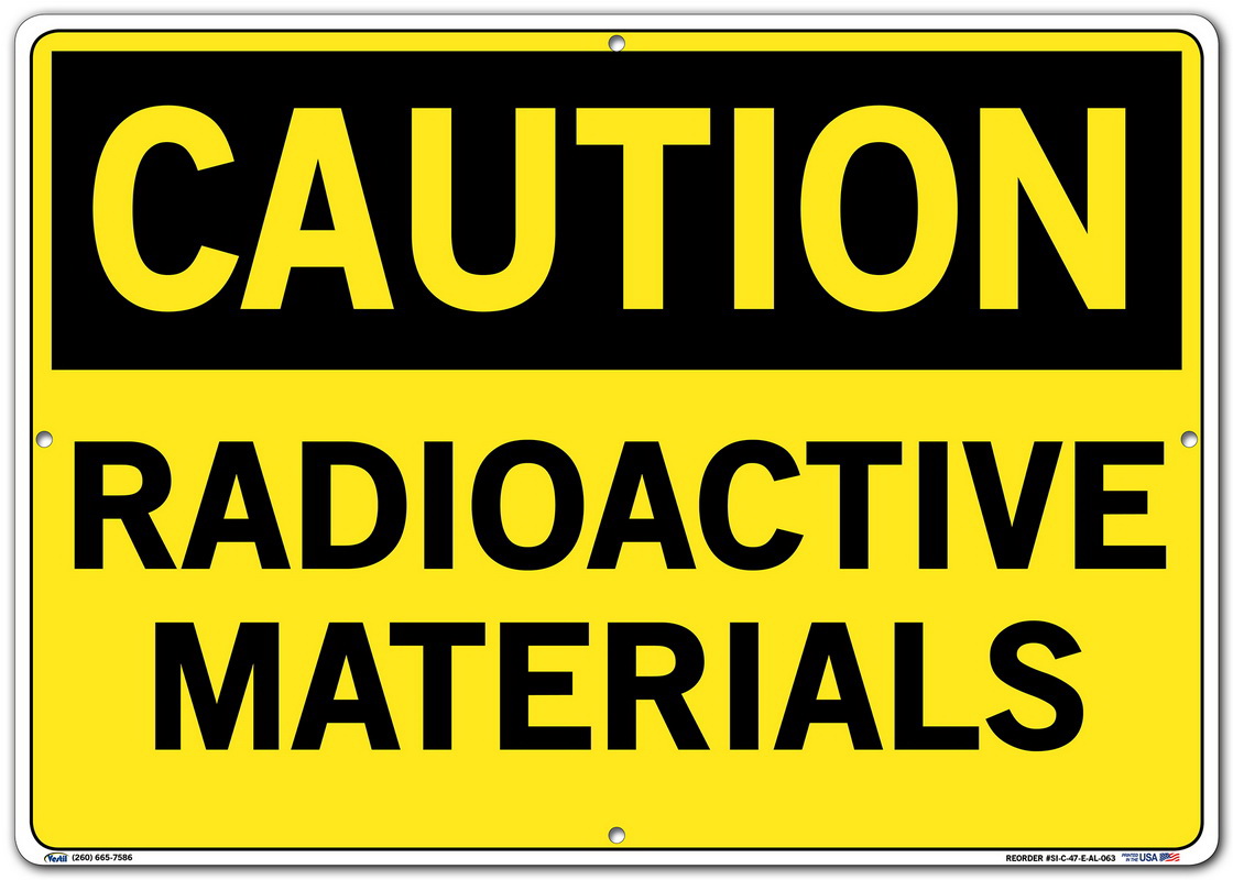 Vestil SI-C-47-E-AL-063 RADIOACTIVE MATERIALS Caution Sign, Aluminum, 0.063" Overall Size, 20.5" W x 14.5" H