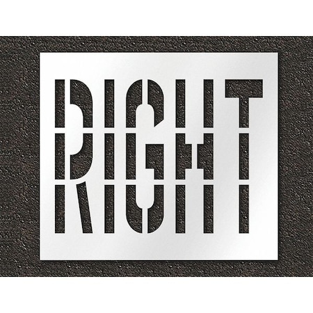Pavement Stencil, Character Type Message, Duty Heavy, FAA AC 150/5340-1K Compliant No, Font Highway Gothic, Included Characters, Messages, and Symbols Right, Includes Right, Individual Character Height Not Applicable, Individual Character Width Not Applicable, Interlocking No, Interlocking Orientation Not Applicable, Material Polyethylene, Message or Symbol Height 36 in, Message or Symbol Width 49 in, Number of Pieces 1, Overall Stencil Height 48 in, Overall Stencil Thickness 0.125 in