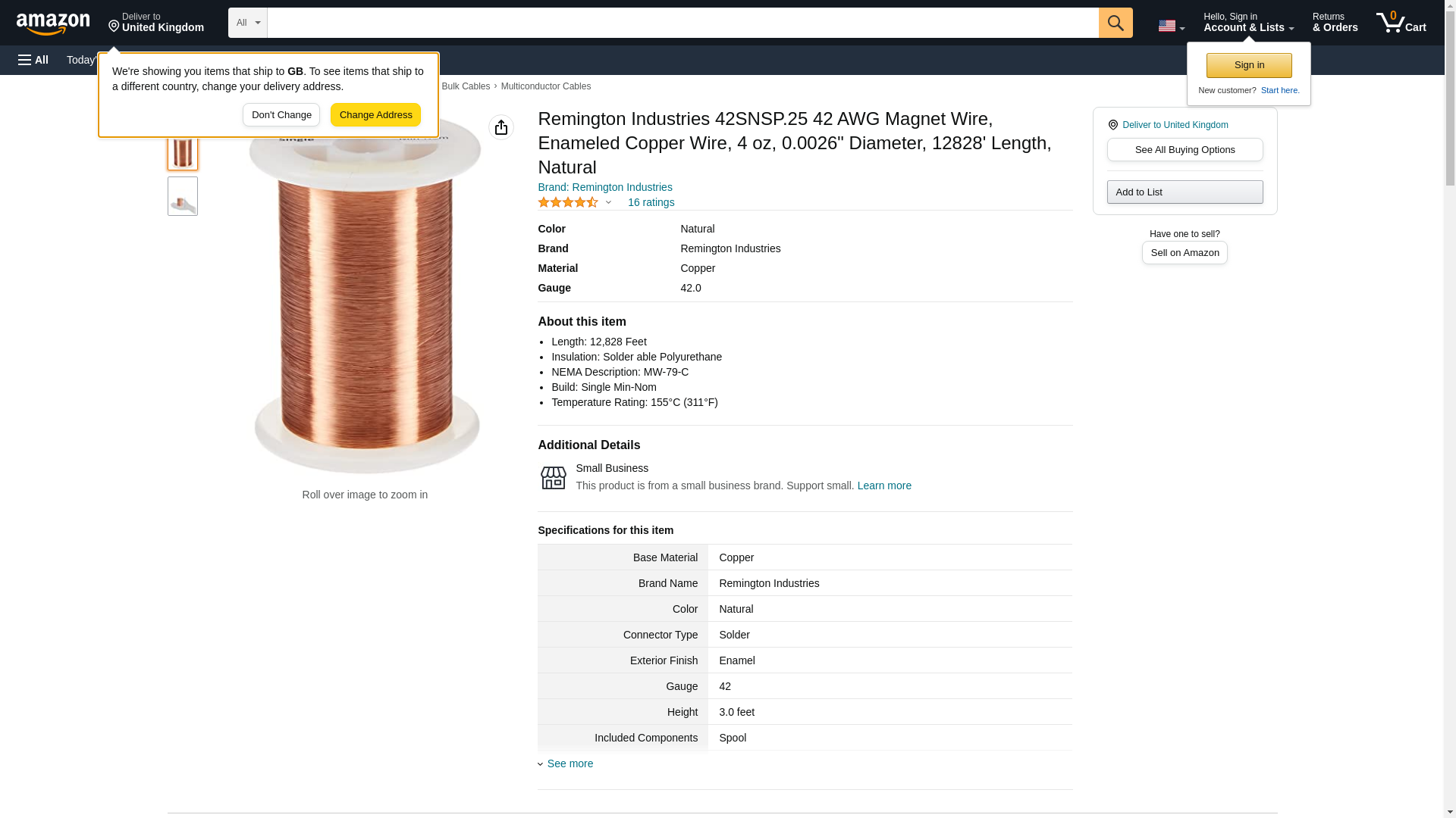 Remington Industries 42SNSP.25 42 AWG Magnet Wire, Enameled Copper Wire, 4 oz, 0.0026" Diameter, 12828' Length, Natural